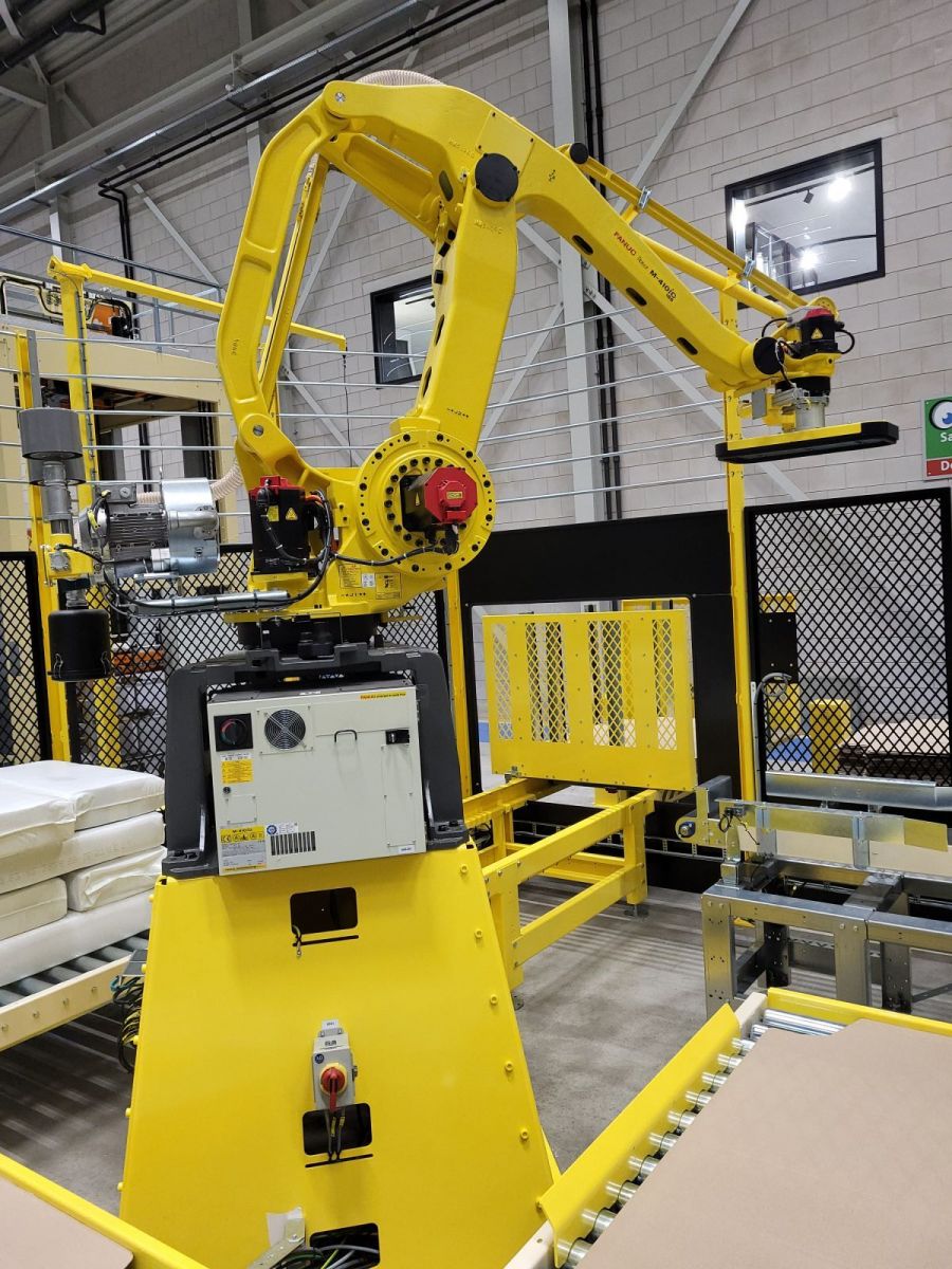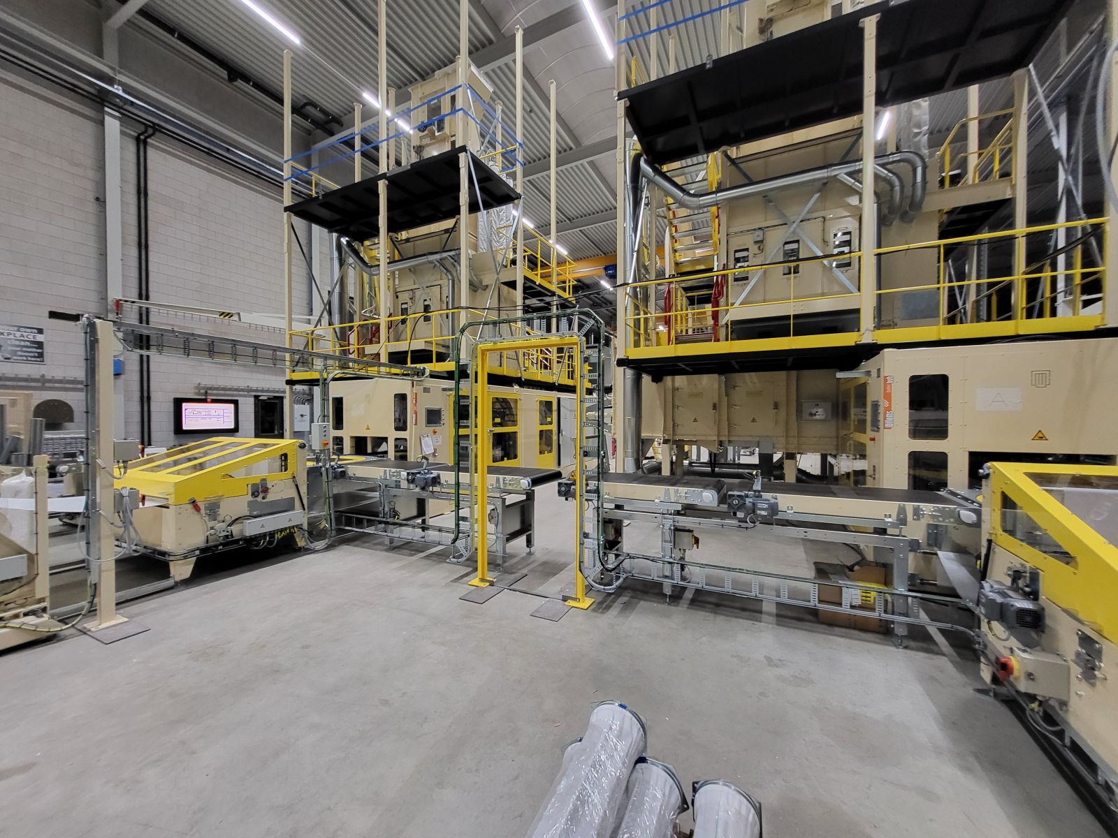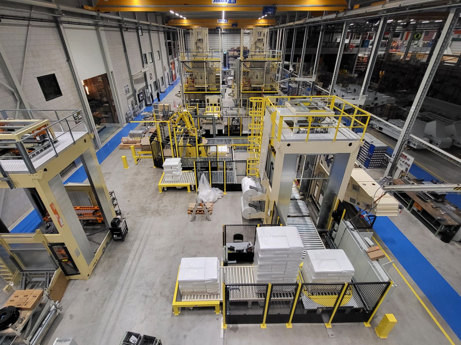 Willems hat erneut eine komplette Verpackungslinie in die USA geliefert, um Ballen aus Glaswolle-Einblasdämmung zu produzieren. Hochwertige Einblas-Glaswolle wird in zwei vollautomatischen Ballenpressen verpackt. Inbegriffen ist ein geschlossenes Bandtransportsystem zur Beschickung der Ballenpresse. Ebenfalls enthalten sind sämtliche Bühnenkonstruktionen und Sicherheitsplattformen. Eine Turn-Key-Lösung, um den Kunden so weit wie möglich zu entlasten. Die Linie umfasst zwei Ballenpressen. Inklusive Roboter-Stapelsystem, das die Ballen automatisch auf Kartonbögen stapelt. Ein Metalldetektionssystem und eine Kontrollwaage überprüfen die Ballen vor der Stapelung. Sobald die Ballen auf dem Bogen gestapelt sind, durchläuft die Ladung den Stretchhooder (Folienhaubenmaschine). Und schon ist alles perfekt verpackt und bereit für den Versand an die Kunden, die das Produkt für Dämmzwecke verwenden.