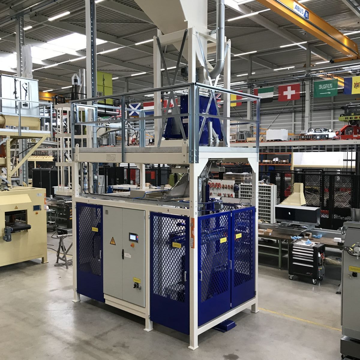 Lieferung einer neuen FFS-Maschine zum Verpacken von Holzpellets. Auch eine Erweiterung eines bereits vorhandenen Roboterpalettierers, damit diese Säcke auch gestapelt werden können.