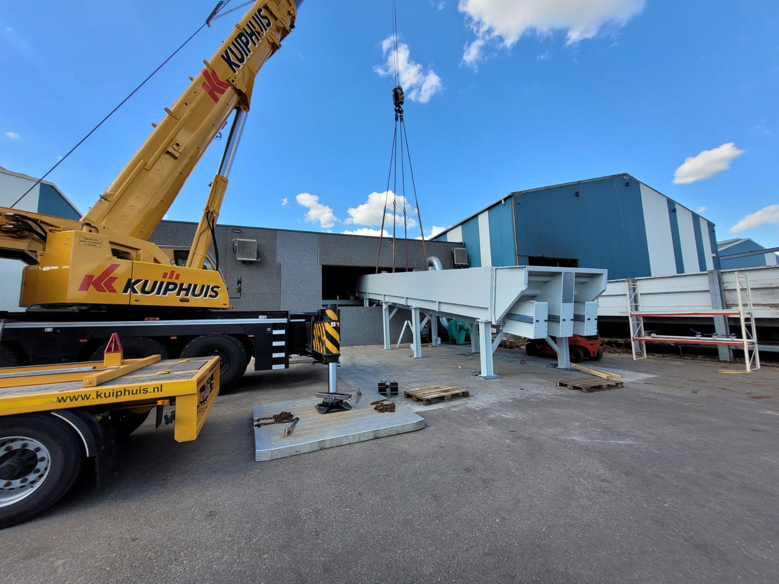 It concerns a heavy-duty double log deck, in order to dose the right amount of logs into the log shaver. Extreme robust execution. The first part of the log deck has a closed bottom. Further to the end, the bottom is open, so dirt can fall down and be collected underneath the log deck for removal. As this is best to not feed this into the log shaver. This was all installed in the shortest time possible in order to minimise downtime.