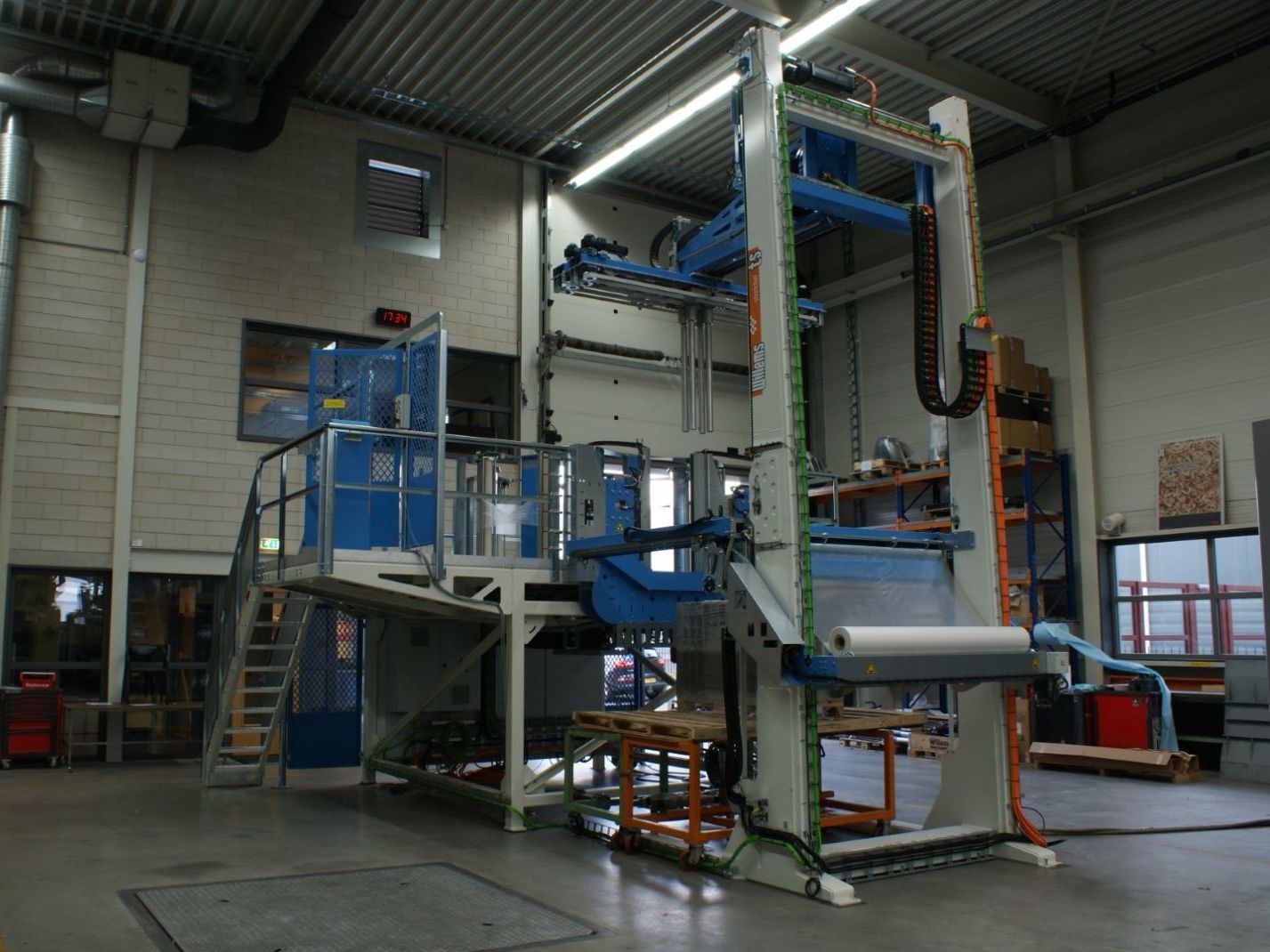 Emballer des pierres sur une palette n'a rien de spécial en soi. Mais c'est le cas si vous devez vous assurer que les pierres sont visibles de l'extérieur. Et c'est difficile lorsque le film est tiré en double couche sur les pierres. Nous avons développé une machine spéciale pour les briqueteries et les fournisseurs qui veulent que leur produit soit visible en un coup d'œil.