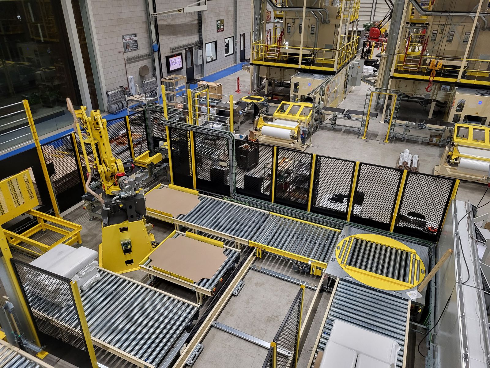 Willems heeft opnieuw een complete verpakkingslijn in de USA geleverd voor het produceren van balen glaswol-inblaasisolatie. Hoogwaardige inblaasglaswol wordt verpakt in twee volautomatische balenpersen. Inclusief een gesloten bandtransporteursysteem om het product in de balenpers te voeren. Tevens inbegrepen is al het bordeswerk en veiligheidsplatforms. Een turn-key oplossing, om de klant zoveel mogelijk te ontzorgen. De lijn bevat 2 balenpersen. Inclusief robotstapelsysteem dat de balen automatisch op kartonnen vellen stapelt. Een metaaldetectiesysteem en een controleweger controleren de balen voordat ze worden gestapeld. Zodra de balen op het vel zijn gestapeld, gaat de lading door de stretchhooder. En alles is perfect verpakt en klaar om verzonden te worden naar de klanten die het product gebruiken voor isolatiedoeleinden.