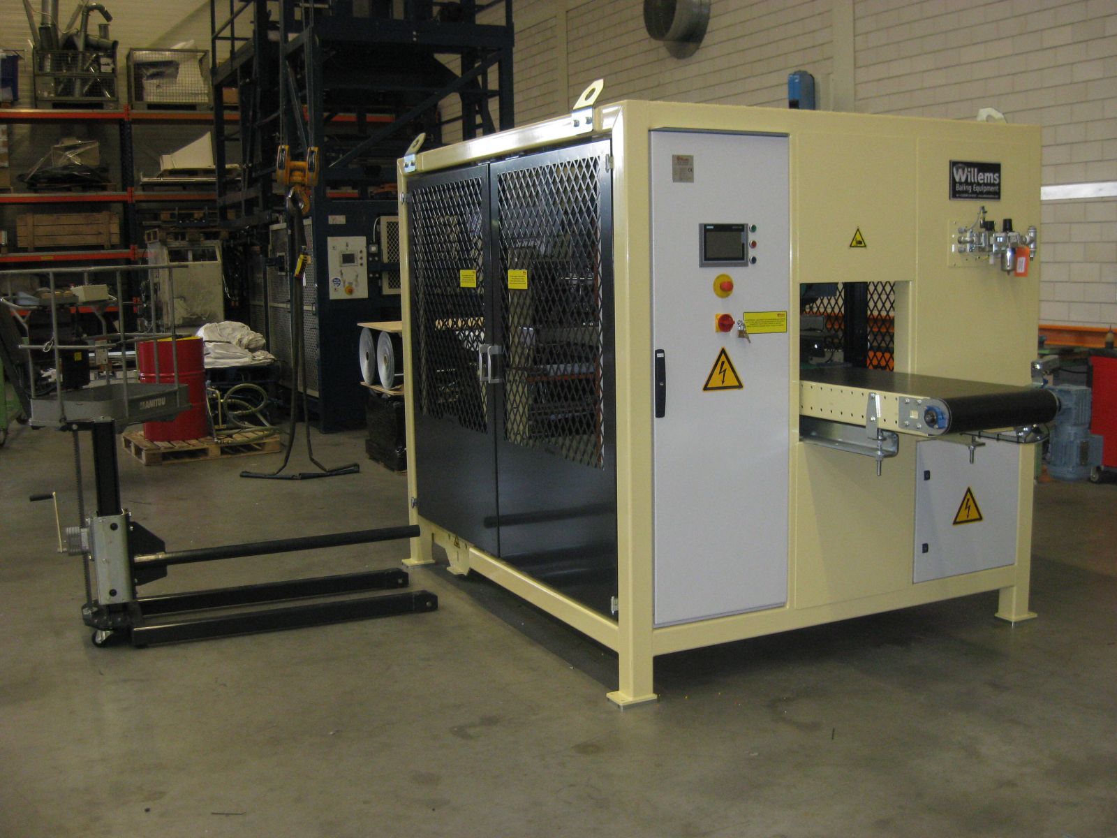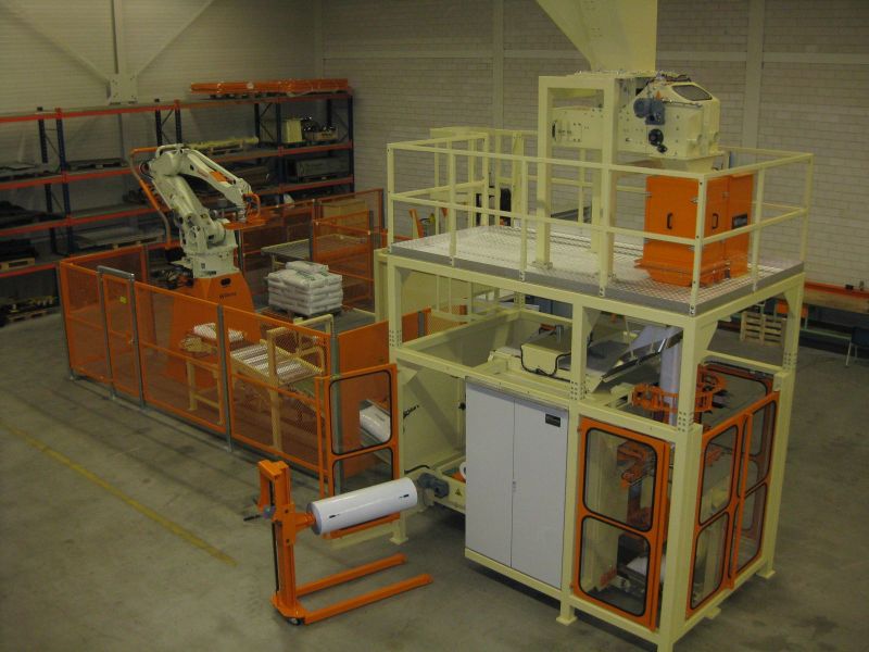Die Flachfolien-Verpackungsmaschine kann vor einer semi-automatischen Ballenpresse aufgestellt werden. Die semi-automatische Ballenpresse schiebt den Ballen in die Verpackungseinheit, die die Verpackung selbst aus Flachfolie herstellt. Für eine schnelle und einfache Montage ist die Flachfolienmaschine in einen einzigen Rahmen eingebaut. Das Verpacken in Flachfolie anstatt in vorgeformte Säcke spart hohe Folien- und Personalkosten ein. Der Verpackungsprozess wird vollständig automatisiert.