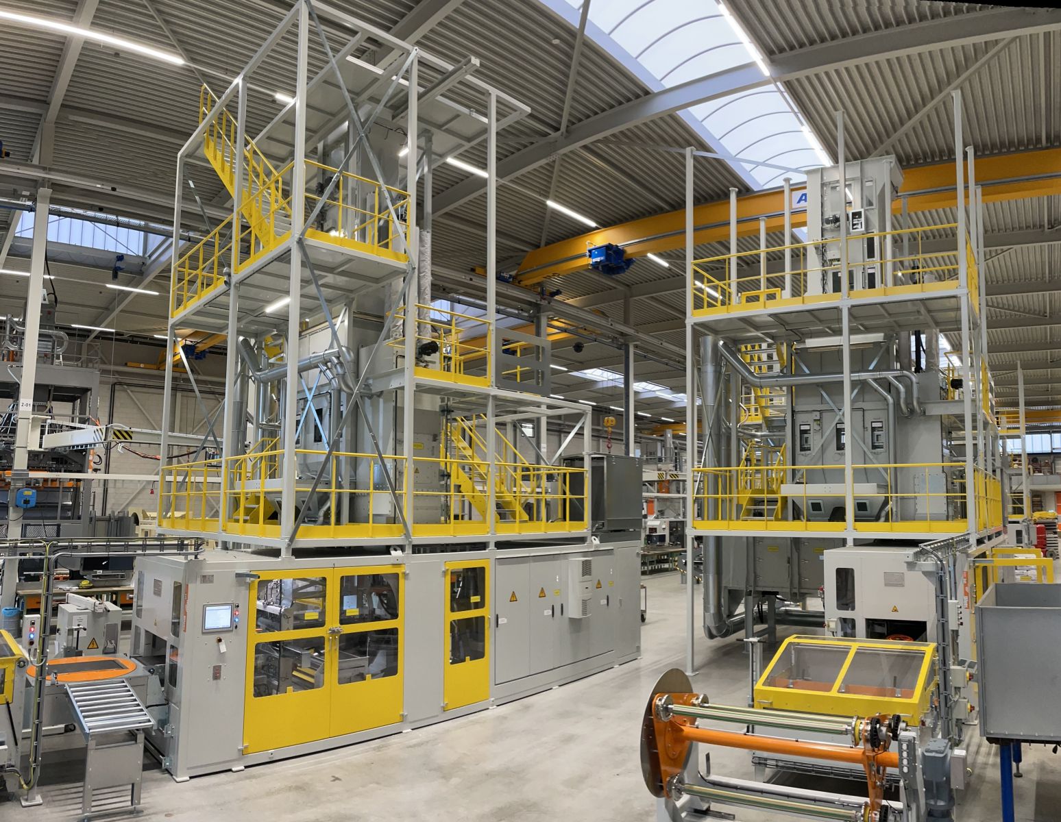 Der Kunde sucht Zuverlässigkeit und Kontinuität, weil 24 Stunden am Tag produziert werden muss. Ein Schmelzofen, der das Glas schmilzt, muss dauerhaft funktionieren. Es dauert fast eine Stunde, bis der Ofen heiß genug ist. Das erfordert ein hohes Maß an Automatisierung. Als Option hat die Isolierpresse drei Folienrollen in einem Karussell. Dadurch kann die Maschine 40 Stunden durcharbeiten, bis die Folie wieder ausgetauscht werden muss. In dieser Zeit können ungefähr 4000 Ballen verpackt werden. Darüber hinaus kann die Maschine während des Austauschens der Folie auch weiterarbeiten.