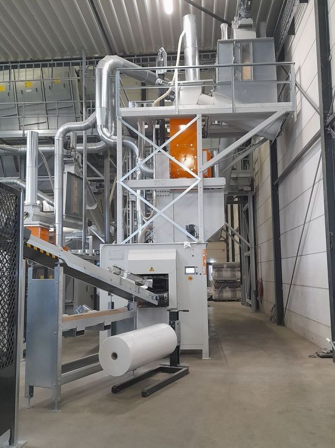 Die Linie wurde um eine Holzspänepresse, eine Sägemehlpresse und einen Roboter erweitert, der beide Ballenpressen auf maximaler Kapazität halten kann.