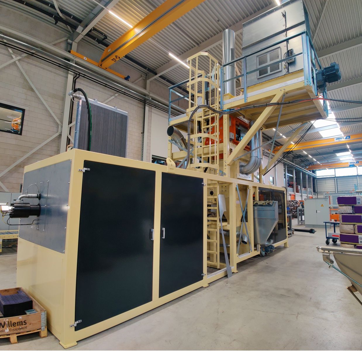 Komplette Verpackungslinie zum Komprimieren und Verpacken von Flachslords. Die Ballenpressen von Willems eignen sich zur Herstellung unterschiedlicher Ballengrößen mit unterschiedlichen Verdichtungsverhältnissen.