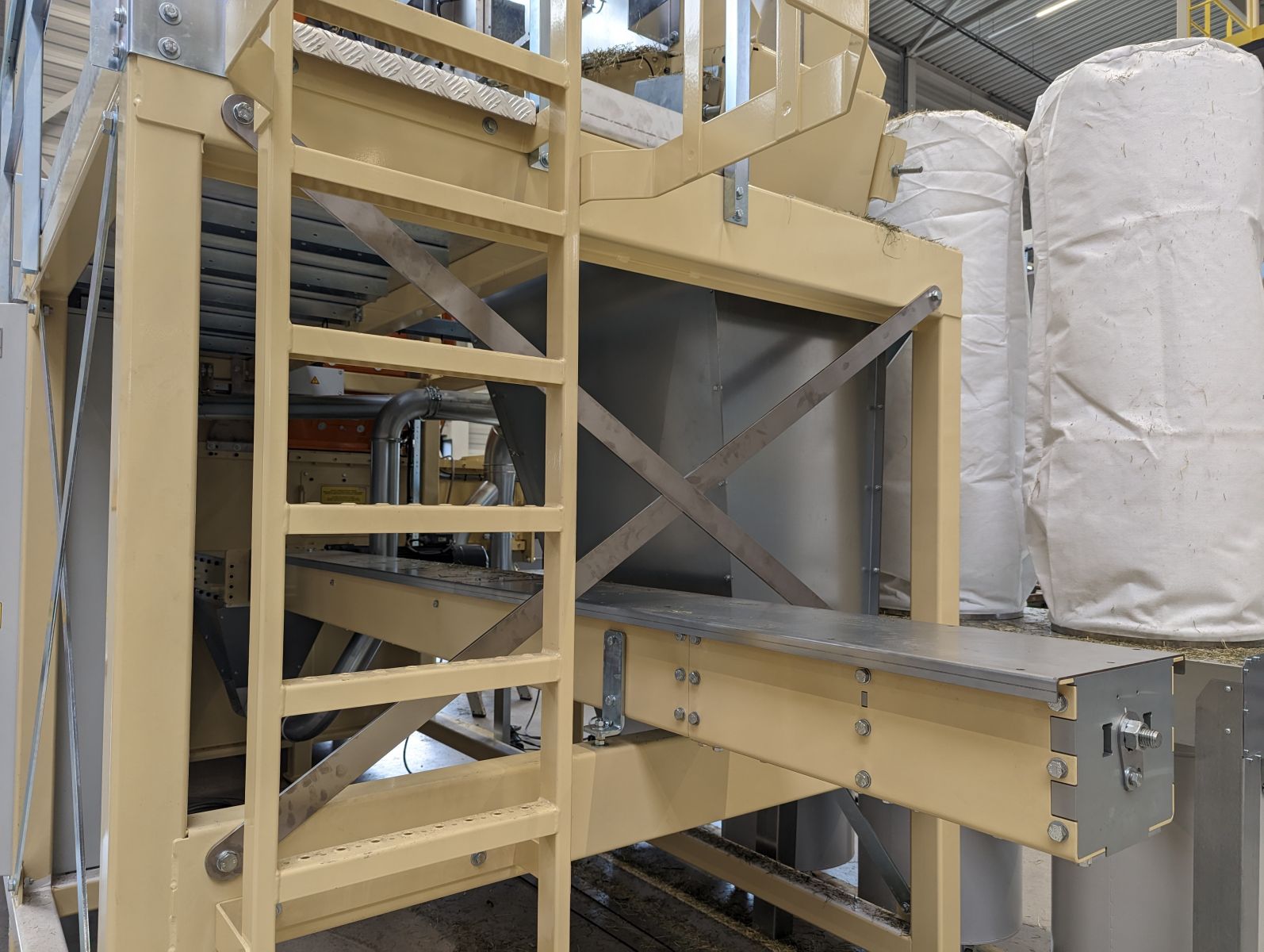 Ein Dosierband fördert das Produkt in den elektronischen Netto-Wiegebehälter. Eine Software sorgt dafür, dass das gewünschte Gewicht automatisch zugenommen wird. Die Einstellungen im Wiegeprogramm passen sich automatisch an. Das bedeutet, dass der Benutzer der Maschine lediglich das gewünschte Endgewicht eingeben muss. Bei unterschiedlicher Schüttdichte des Produktes bleibt das Ballengewicht konstant.