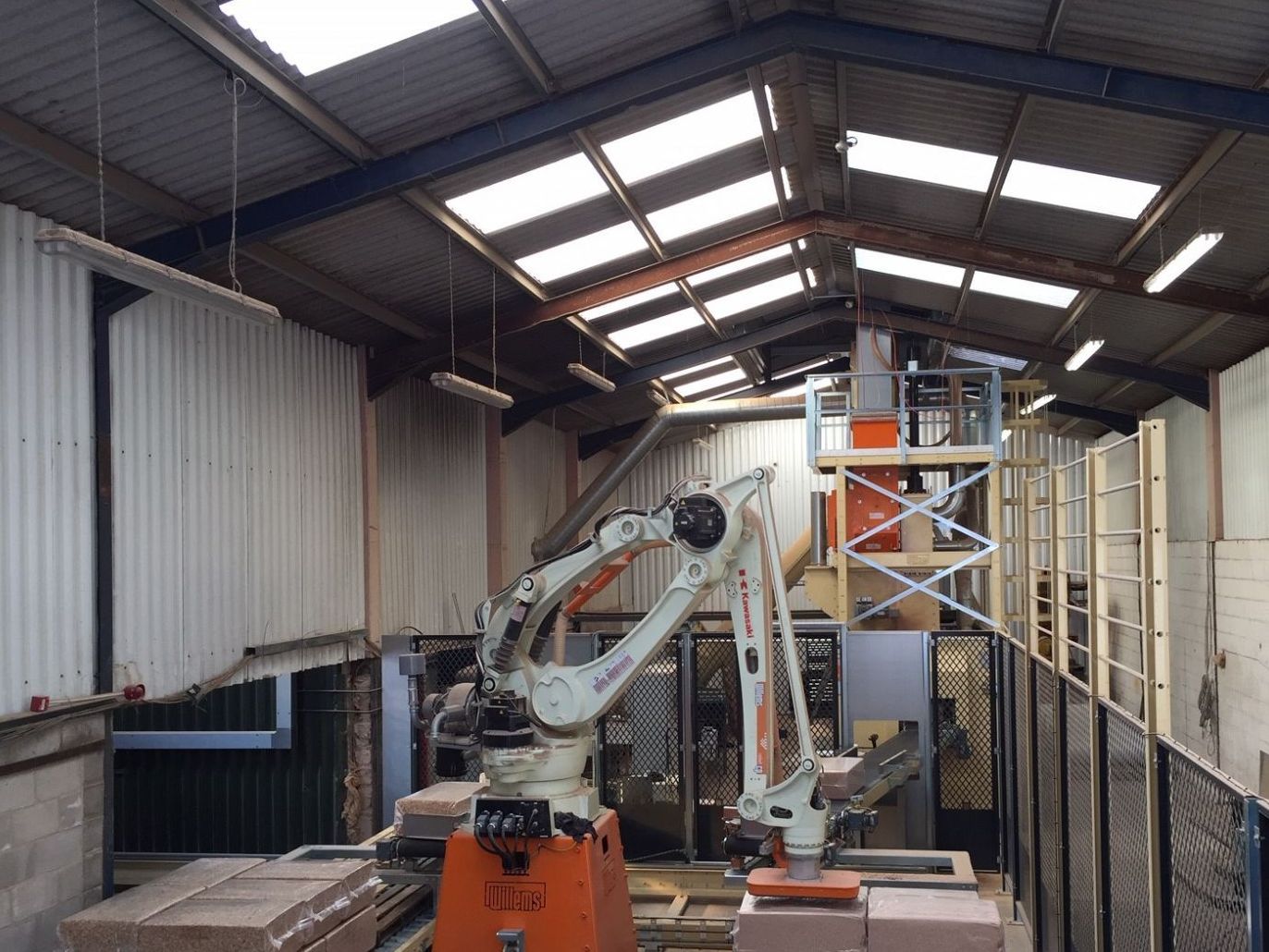 Willems baling hat eine komplette Fabrikationsanlage geliefert, bestehend aus einer HL Ballenpresse, einem Bunker und einem Roboter Palettier.