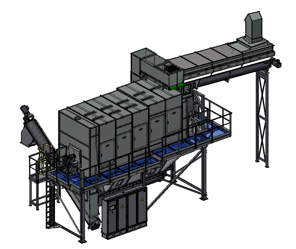 Siebinstallation: Ziel dieses Projekts war der Austausch eines verschlissenen und wartungsintensiven Schüttelsiebs. Willems hatte hierfür die perfekte Lösung. Mit einem Sternsieb werden die übergroßen Teile entfernt und mit einem Trommelsieb werden Staub und Sägemehl perfekt vom Hauptprodukt getrennt. Sowohl Sternsieb als auch Trommelsieb sind äußerst wartungsarm. Dies ist eine perfekte Lösung, um die Leitung wieder optimal zuverlässig zu machen.
