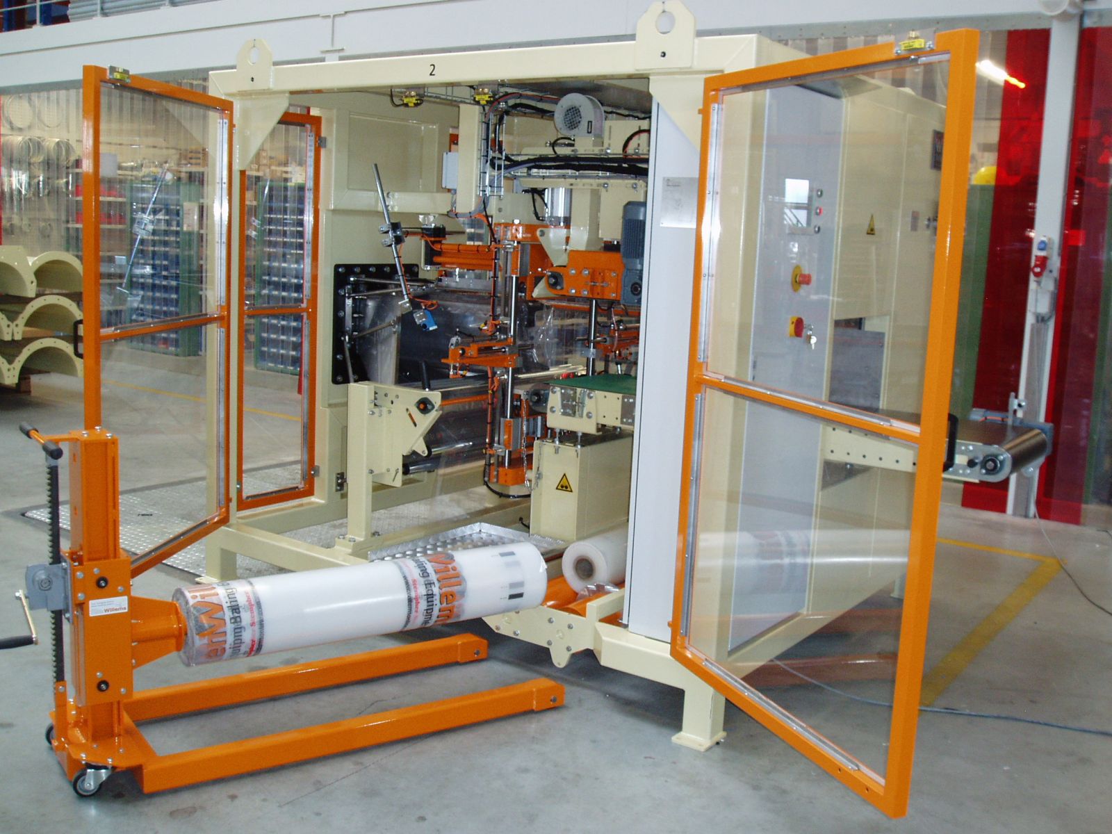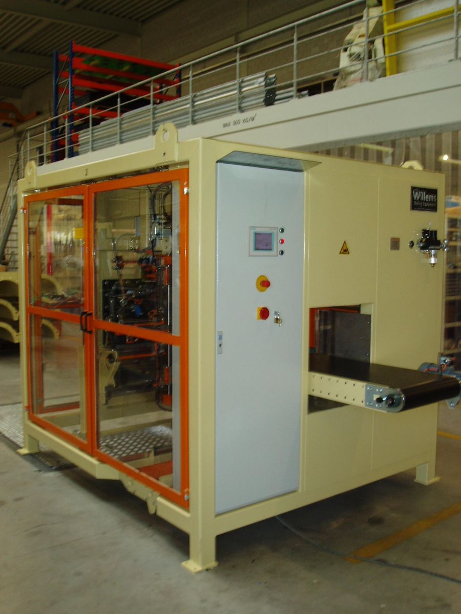 The flat foil packaging machine can be placed in front of a semi-automatic baler to transform it into an automatic baler. The semi-automatic baler pushes the bale into the packaging unit, the packaging unit makes the packaging itself, completely from flat foil. The flat foil machine is built in one frame for quick and easy installation. Packaging from flat foil instead of pre-formed bags saves enormously on foil costs and personnel. The packaging process is fully automated.
