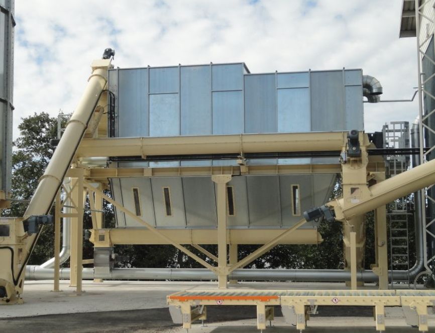 By means of an air jet everything that deviates (for example from wood shavings) is blown out of the system. Air-driven screening technology can be used for all types and sizes of dry substances.
