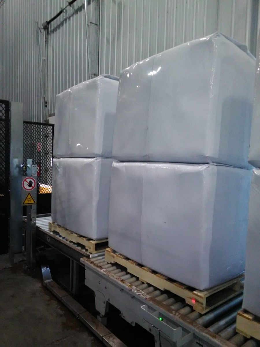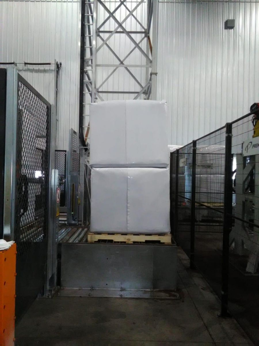 The new baler has a capacity of packing 3.1 m3 bales and 6.2 m3 bales. The 3.1 m3 bales are stacked on top of each other by a stacker. This means more productivity, better format and load abilities and less damaged goods.