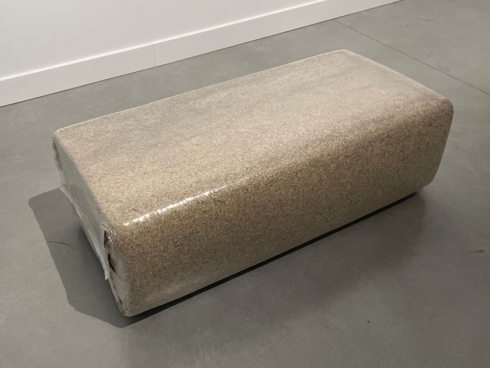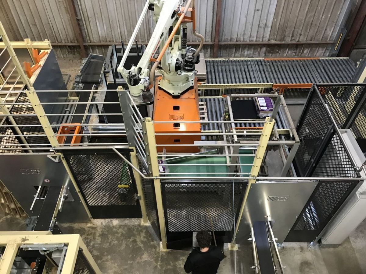 Baler for packaging flax with an extra high compaction. Compared to standard packaging, this means that 28% more fits in a bale of 72 L. In this way, transport costs are saved. The line was delivered with a robot and stretch hood machine. Robot also places plastic sheets on the pallets.