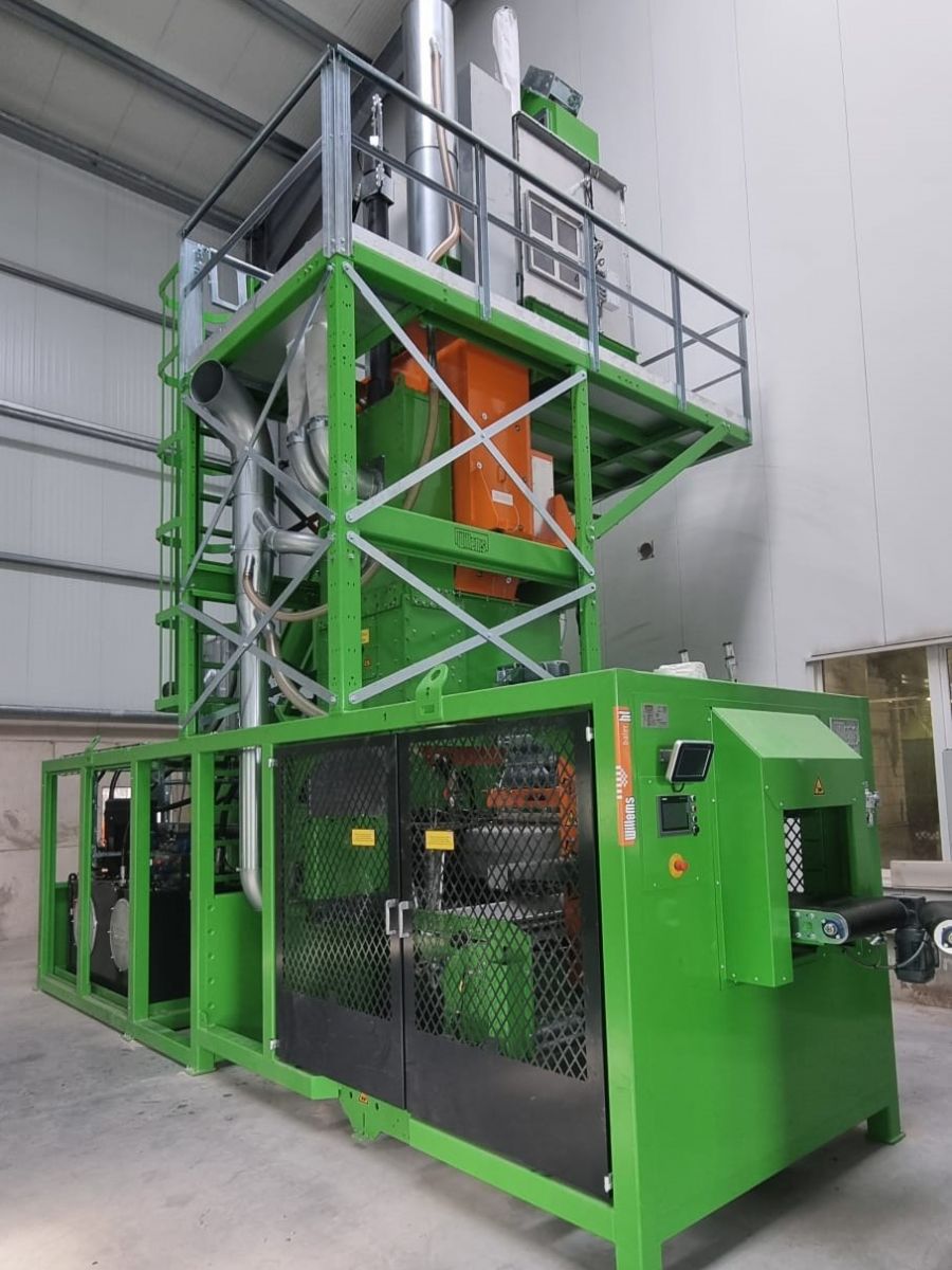 Previously, Willems has delivered a baler for packing and stacking chopped straw. The chopped straw is packed into bales and then stacked fully automatically by robot. The pallet load is then wrapped in stretch film, fully protected from rainwater. With the fully automated, hassle-free line, a forklift driver only needs to collect full pallets now and then.