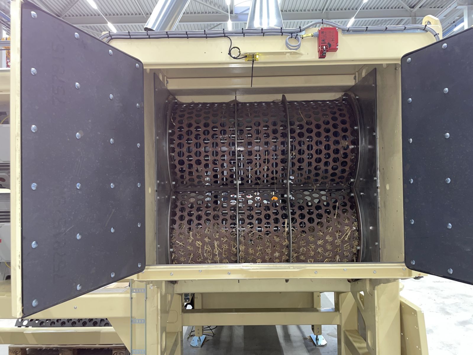 Dans un premier temps le brise-balle sépare le produit, et crée un flux de matière en vrac. Ce flux de produit est ensuite transporté vers un broyeur à marteaux où les fibres sont raccourcies à la longueur souhaitée. Ce système permet également d'éliminer des objets étrangers plus lourds à l'aide d'un détecteur de pierres.