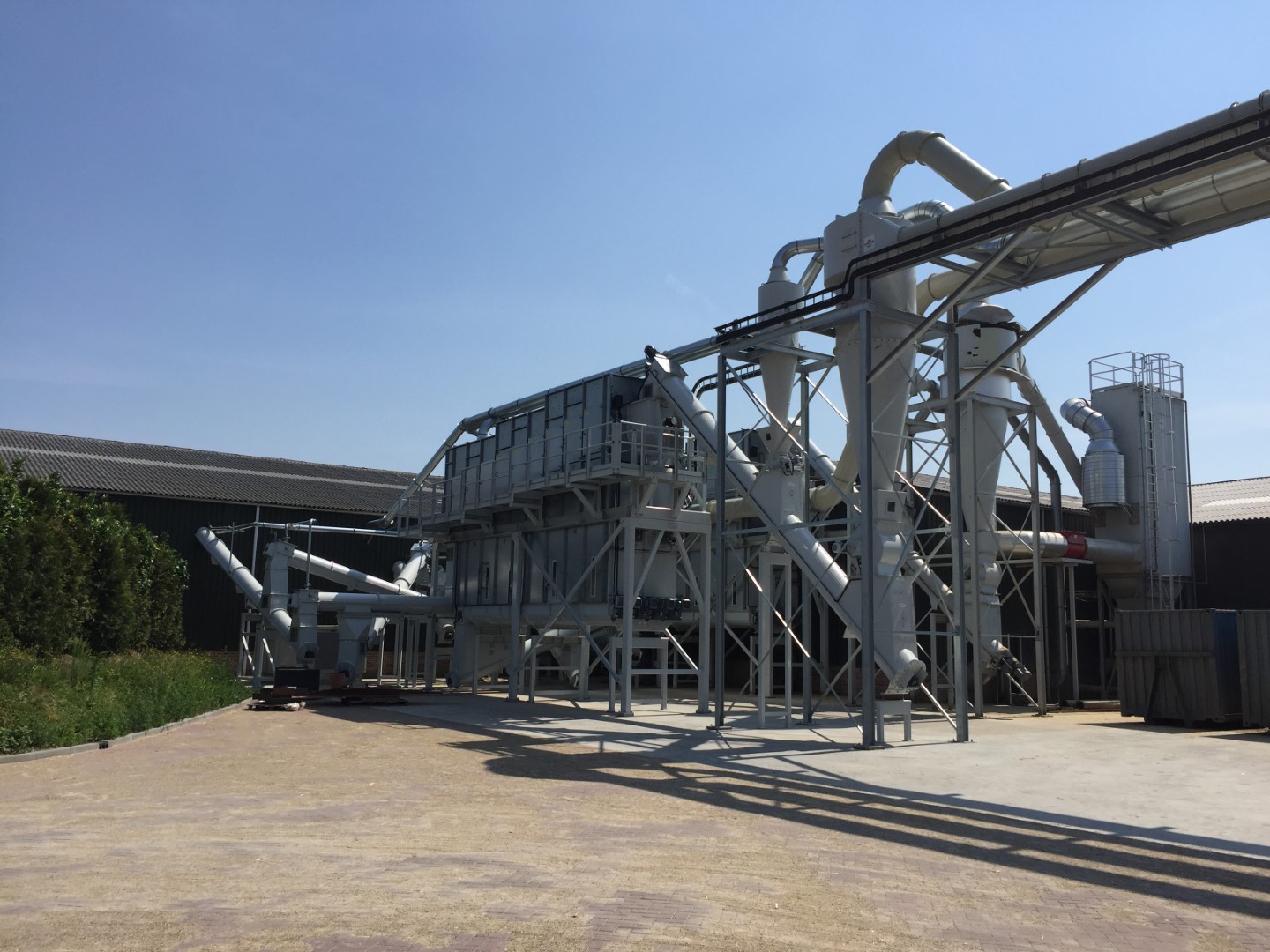 De hamermolen maakt het product fijn tot de gewenste lengte. Stenen en andere vervuiling vallen eruit en het product zelf wordt door een trommelzeef gevoerd.