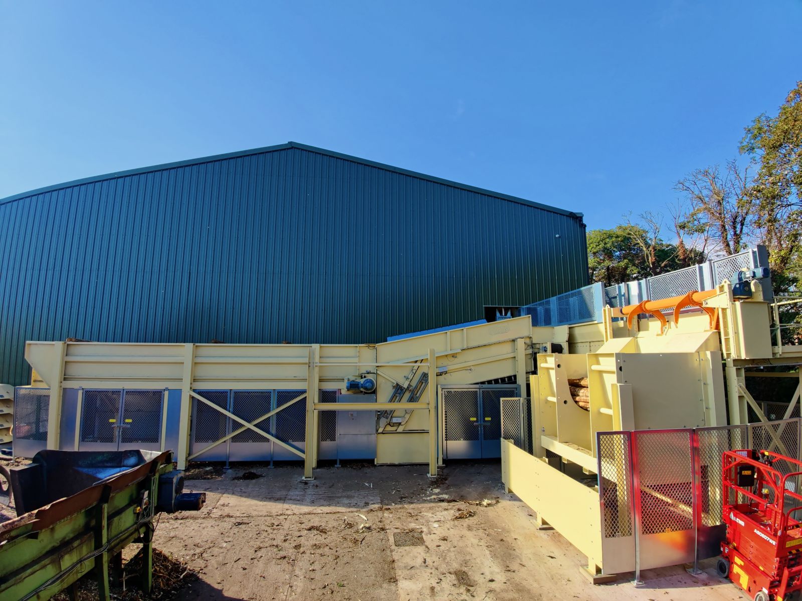 - Met een kraan kunnen bomen op de kettingbaan geplaatst worden voor het bufferen en transporteren van de bomen.