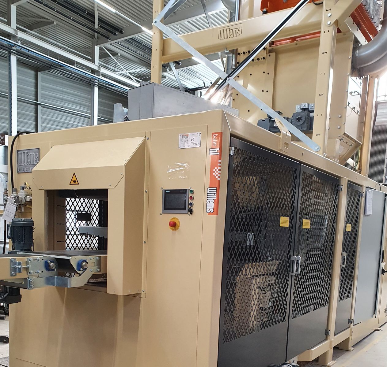 Twee balenpersen voor het verpakken van Houtkrullen in papier.