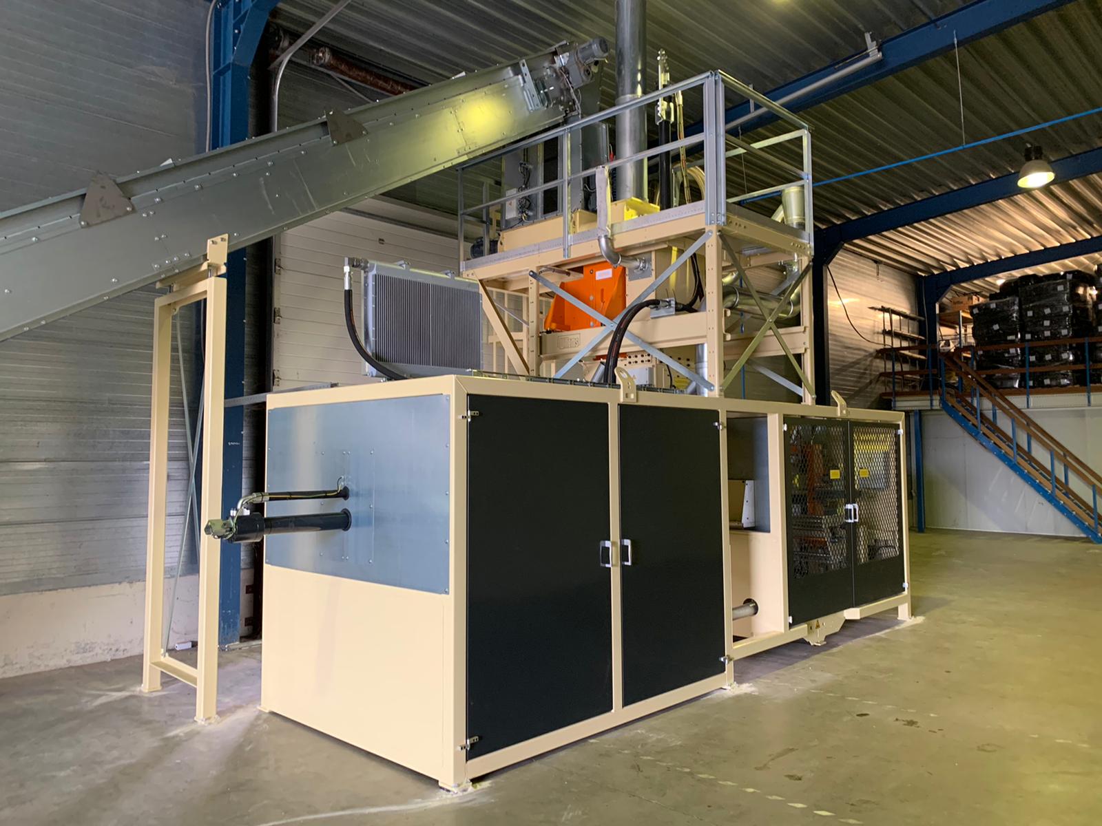Deze Klein verpakkingsmachine kan wel 8 verschillende baalformaten produceren. De balen zijn bedoeld als strooisel voor huisdieren. Door een handgreep in de baal te maken is deze ook gemakkelijk te dragen.