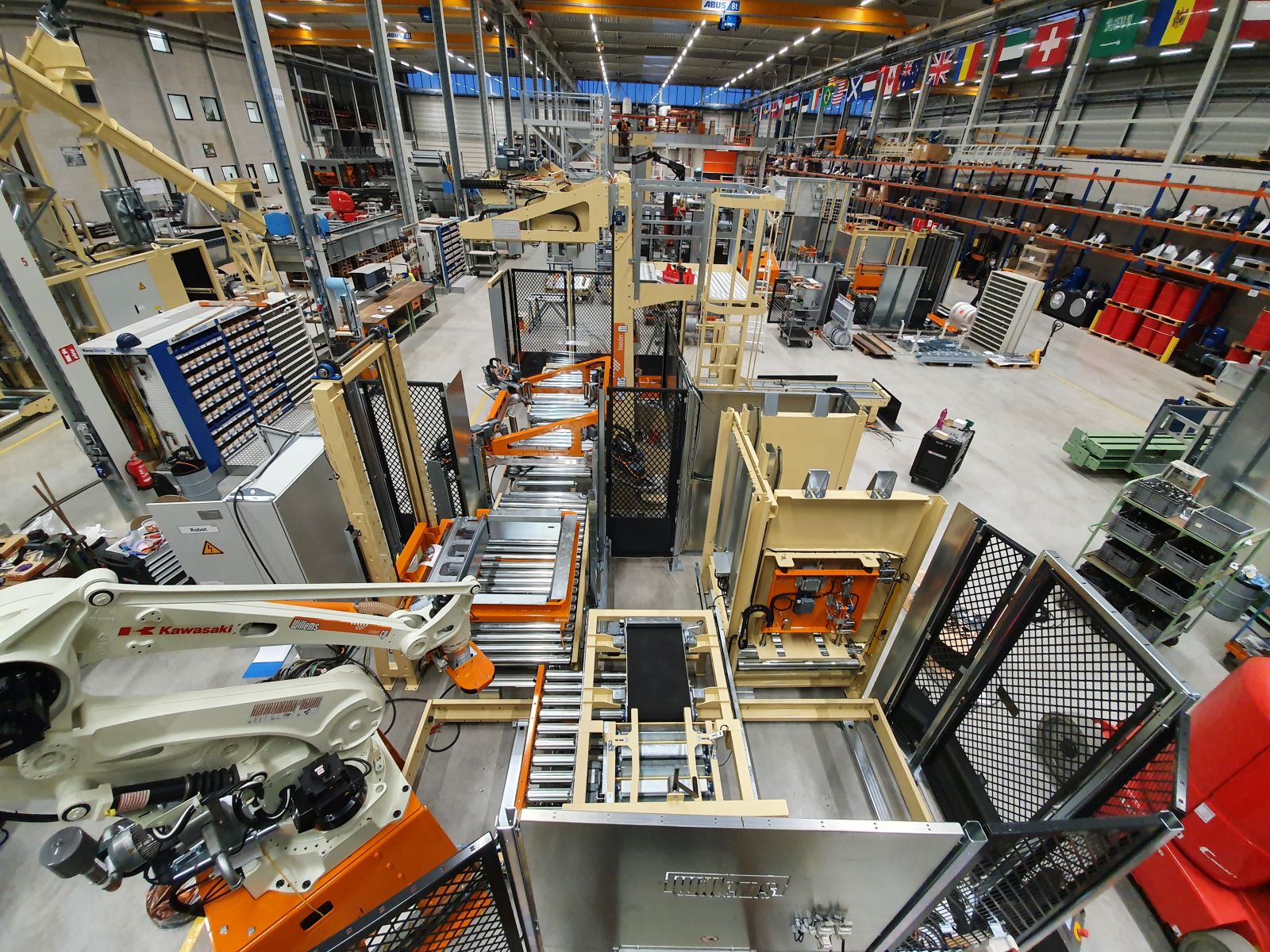 Uitdaging: om in een zeer beperkte ruimte een complete verpakkingslijn te plaatsen: FFS machine voor het verpakken van houtkorrels, robot palletiser, om deze zakken op diverse palletmaten te stapelen. En een rekhoes machine om de complete palletlading van een beschermhoes te voorzien, zodat deze lading beschermd is tegen regen.