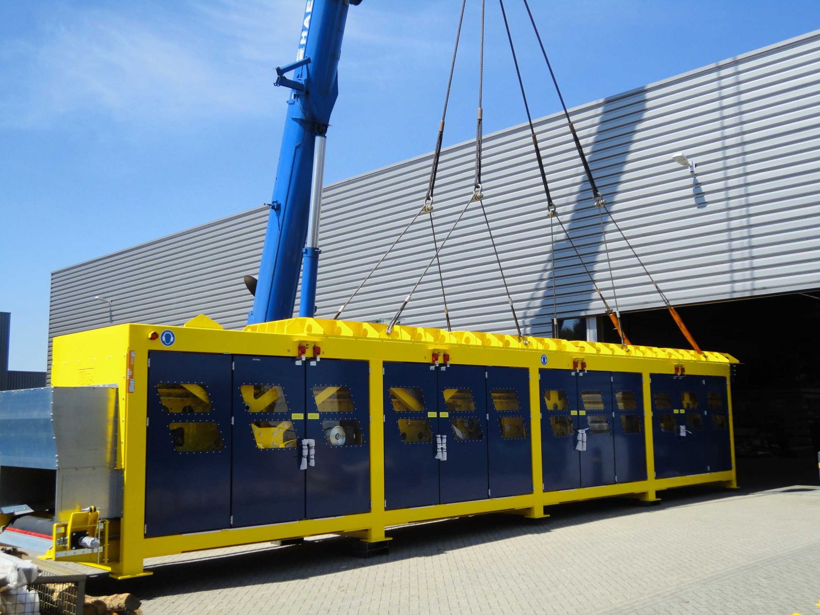 De schaafmachine kan meer dan 20.000 kg natte houtkrullen per uur (20 ton) produceren.